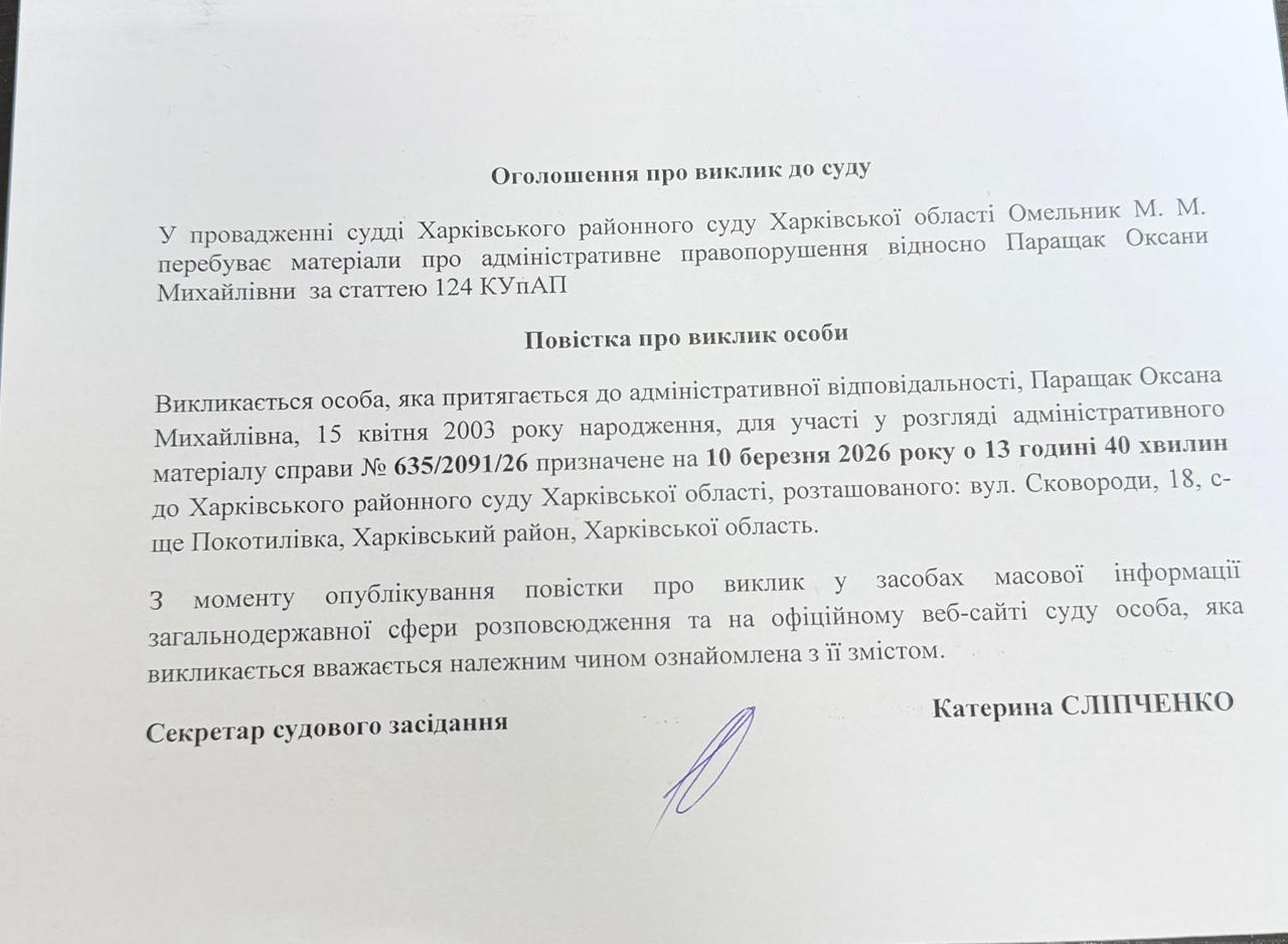 Оголошення про виклик до суду Порщак Оксана Михайлівна по справі №635/2091/26 на 10.03.2026 о 13 годині 40 хвилин